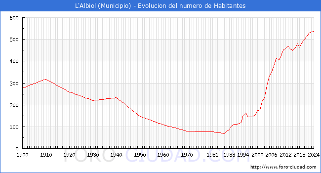 | Evolución de la población desde 1900 hasta 2024 | |||