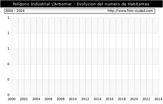 el numero de habitantes en Polígono Industrial L'Arbornar era de 0, igual numero de habitantes que el en el año 2023. En el grafico siguiente se puede ver cuantos habitantes tiene Polígono Industrial L'Arbornar a lo largo de los años.