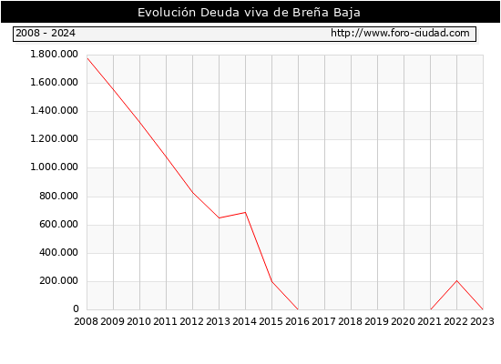Breña Baja - Deuda viva del Ayuntamiento a 31/12/2024 Breña Baja - Deuda viva del Ayuntamiento a 31/12/2024 Segun el Ministerio de Economia y Hacienda el Ayuntamiento de Breña Baja a 31/12/2024 posee una deuda de 0 € . La deuda viva a 31/12/2023 ascendia a 0 € por lo que en el ultimo año la deuda se mantuvo igual. ![]()