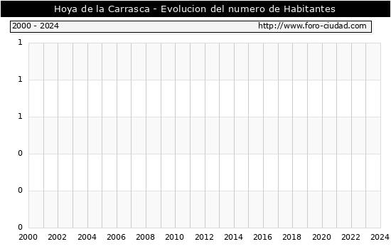 el numero de habitantes en Hoya de la Carrasca era de 0, igual numero de habitantes que el en el año 2023. En el grafico siguiente se puede ver cuantos habitantes tiene Hoya de la Carrasca a lo largo de los años.