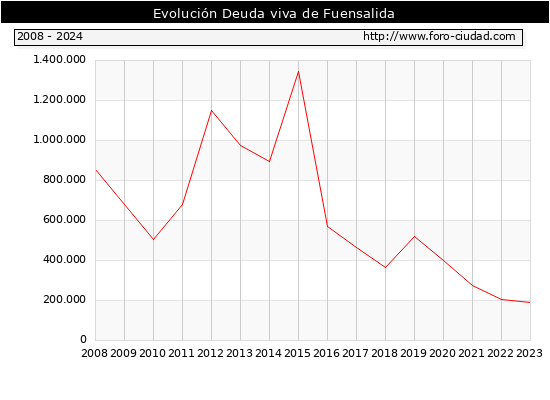 Fuensalida - Deuda viva del Ayuntamiento a 31/12/2024 Fuensalida - Deuda viva del Ayuntamiento a 31/12/2024 Segun el Ministerio de Economia y Hacienda el Ayuntamiento de Fuensalida a 31/12/2024 posee una deuda de 364.000 € . La deuda viva a 31/12/2023 ascendia a 189.000 € por lo que en el ultimo año la deuda crecio en 175.000 €. ![]()