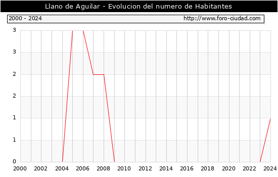 el numero de habitantes en Llano de Aguilar era de 1, 1 habitantes mas que el en el año 2023. En el grafico siguiente se puede ver cuantos habitantes tiene Llano de Aguilar a lo largo de los años.